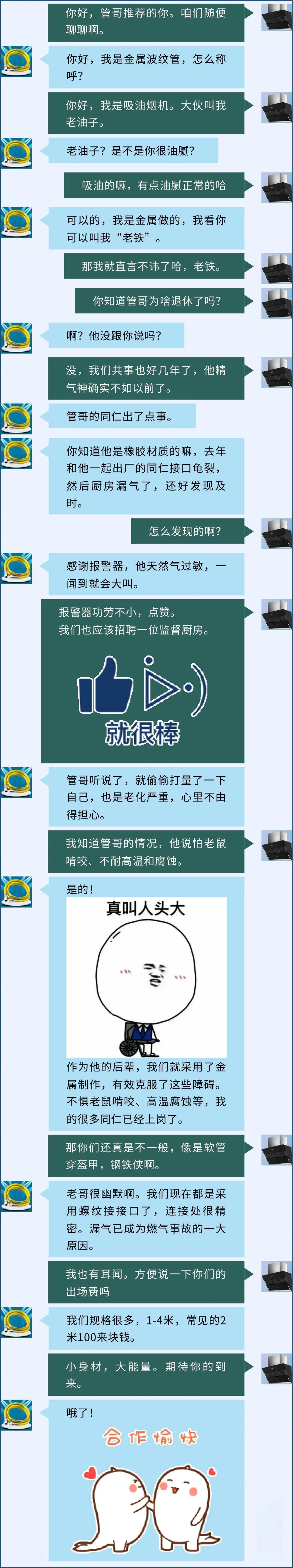 金屬軟管因其優(yōu)質(zhì)的特性和螺紋接口(GB/T41317-2022新國標(biāo))的緊密,逐漸走向千家萬戶,成為廚房標(biāo)配,從源頭上杜絕漏氣風(fēng)險。“老鐵”給我擬了一份特點清單:
